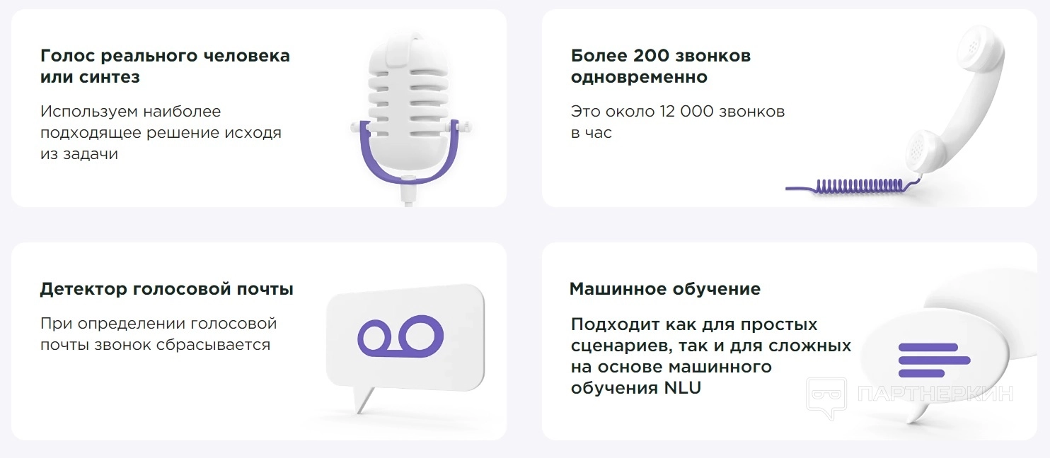 Робот умеет определять автоответчик и голосовую почту. Если он попадает на автоответчик, то сбрасывает звонок, и заказчик не платит за такие вызовы.