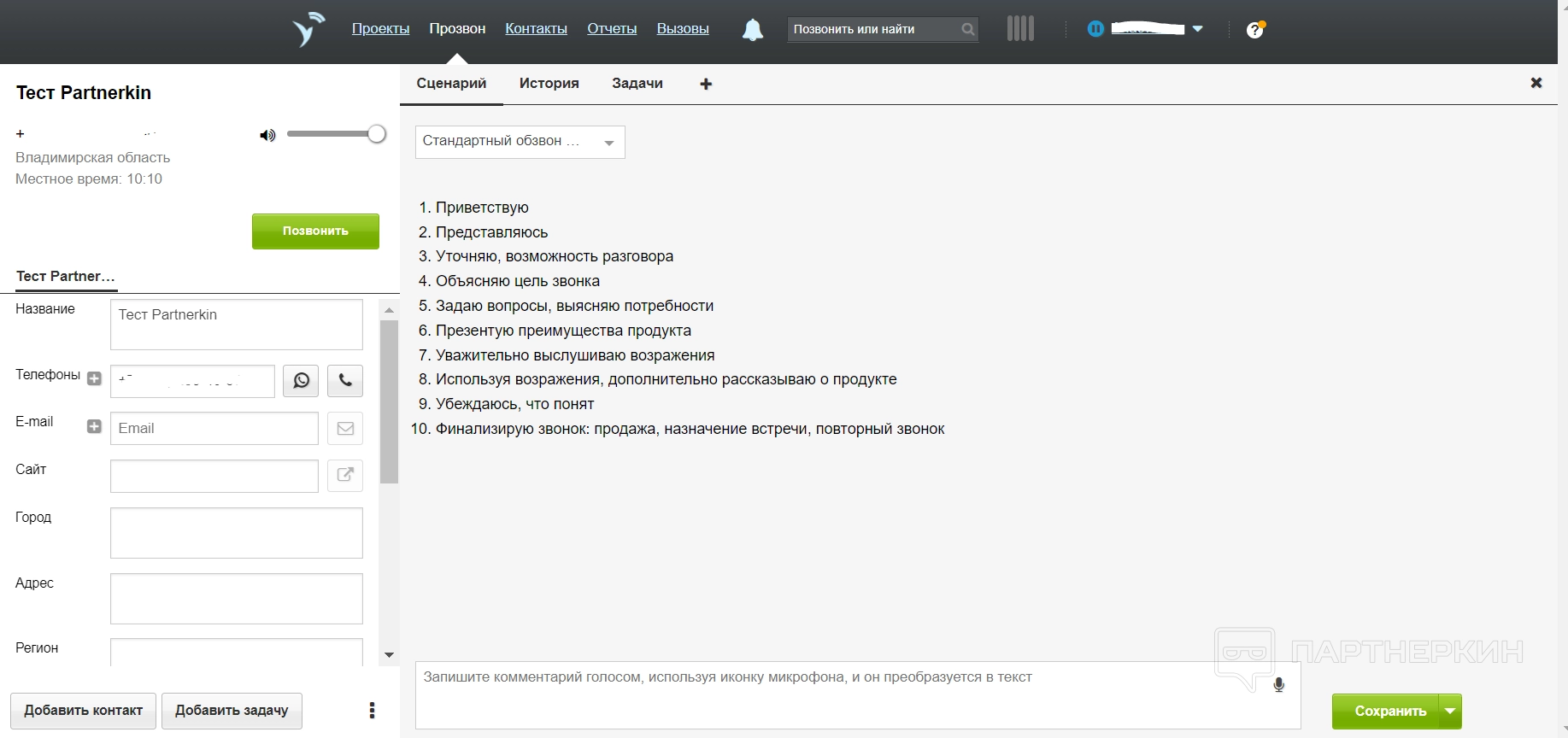 (Тестирование) Начало работы со Скорозвоном