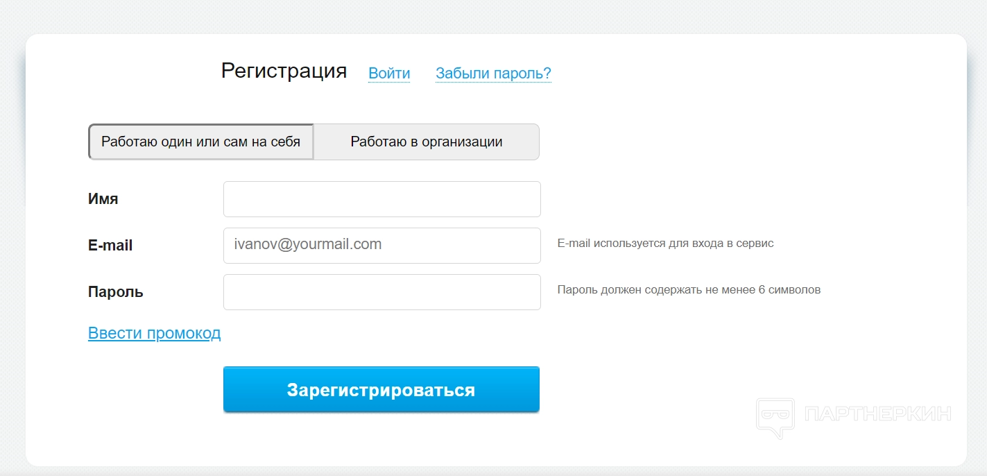 1. Следующий шаг — непосредственное создание учетной записи с привязкой уже по адресу электронной почты. При этом можно сразу же указать, работа производится самостоятельно или внутри организации — внутренняя телефония подстроится под особенности сотрудничества.