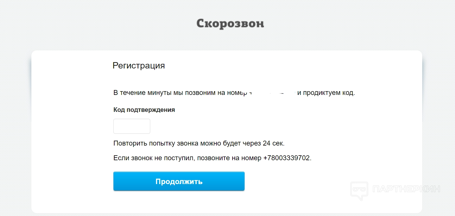 1. Система попросит ввести номер телефона — как раз по нему будет создаваться и привязываться учетная запись. Именно в этот момент можно впервые просмотреть, как именно работает сервис — позвонит робот, который продиктует код подтверждения. На русские номера прозвон срабатывает моментально, на СНГ — требуется повторить попытку, иностранные номера не получили дозвон. Становится понятно, что