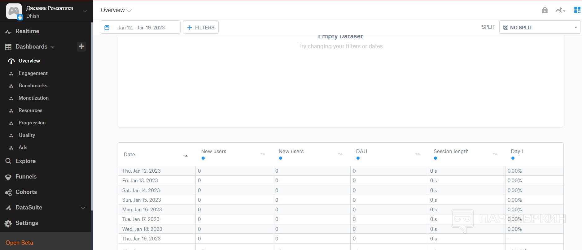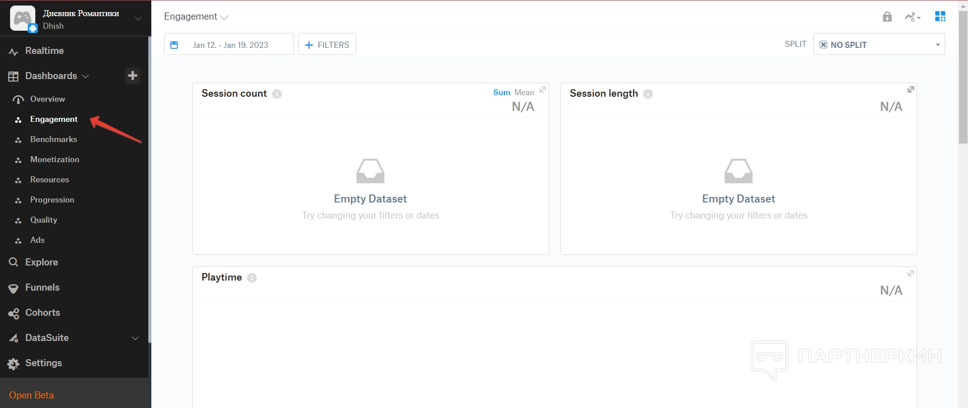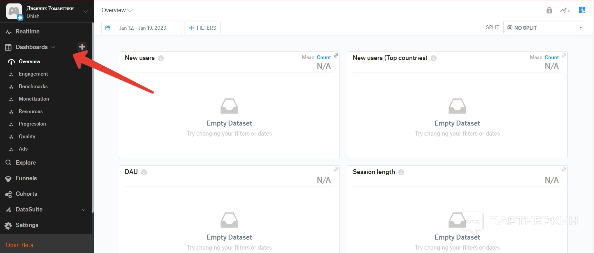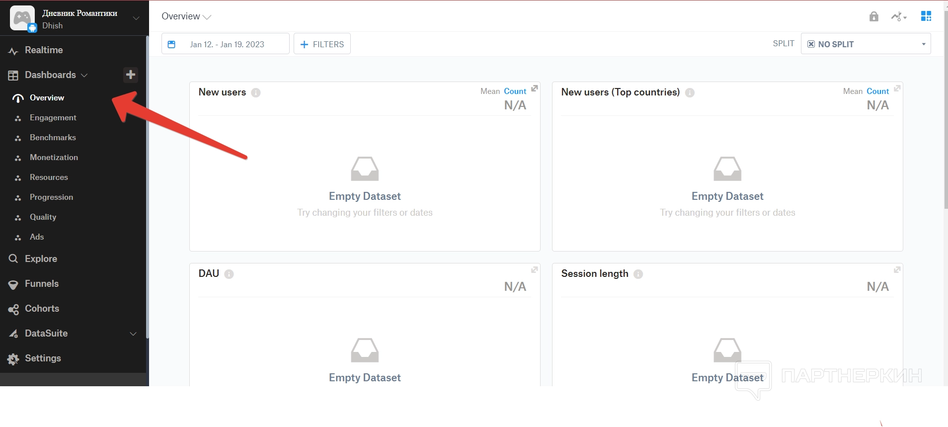 Дашборд — это большой раздел, в котором собираются все аналитические данные по игре. Все они разделены на отдельные пункты.