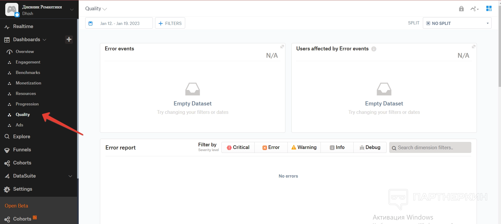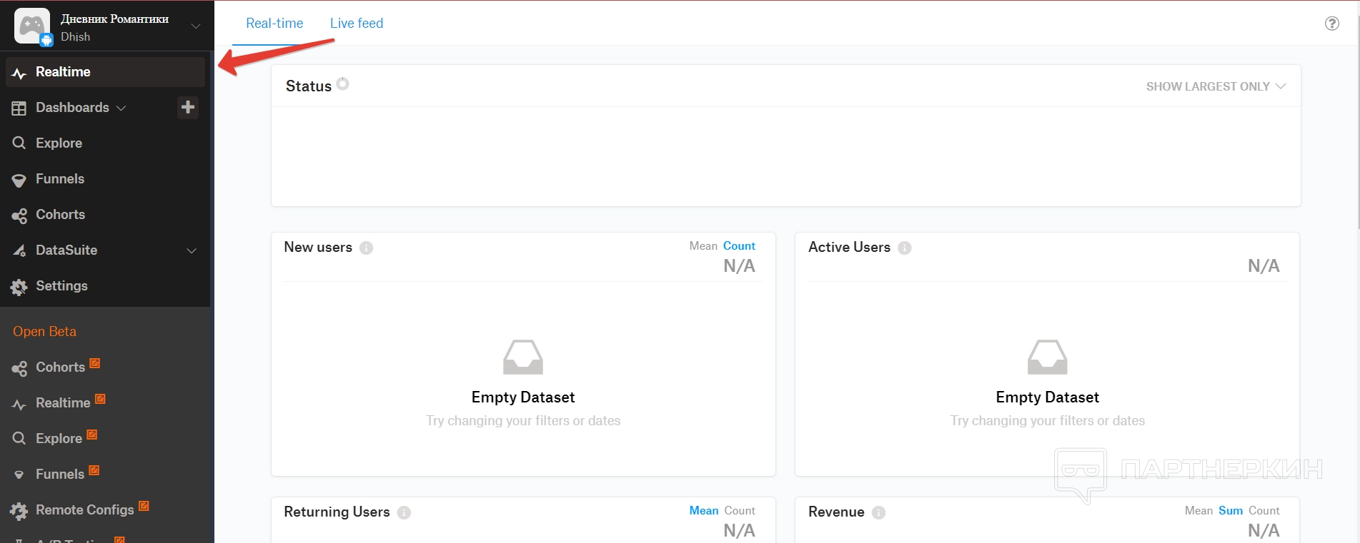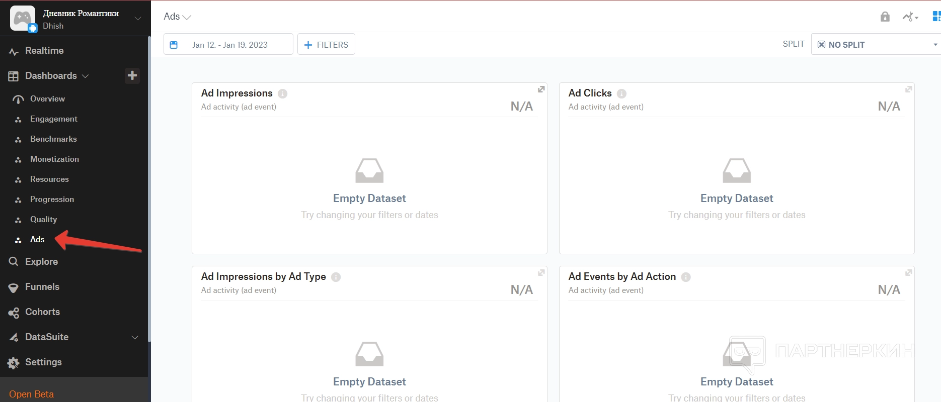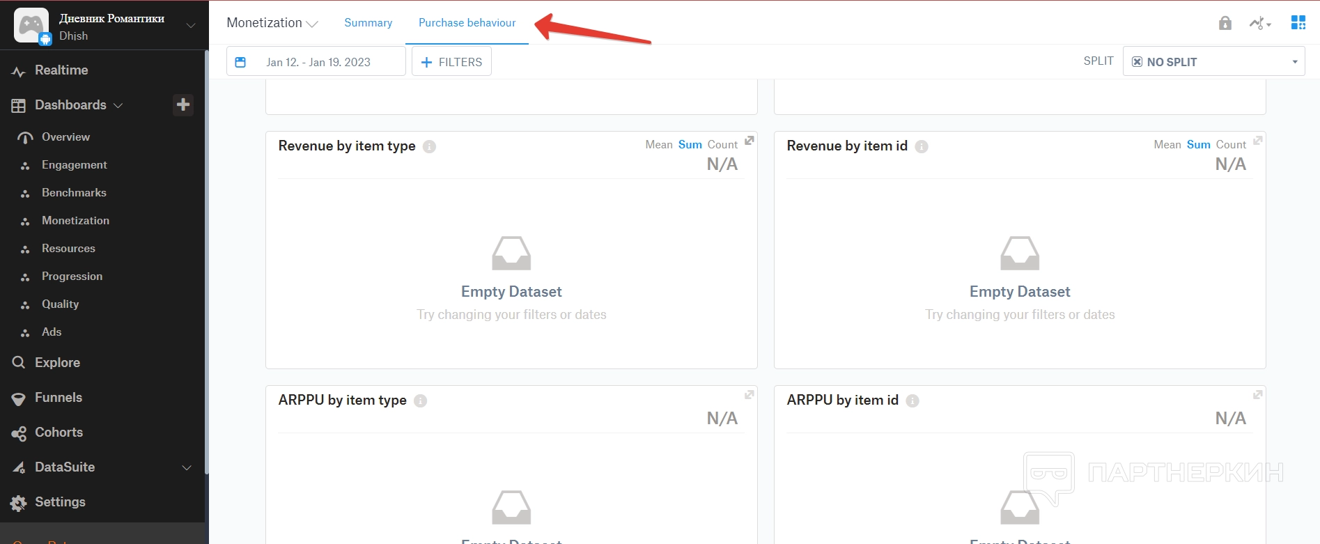 Дашборд — это большой раздел, в котором собираются все аналитические данные по игре. Все они разделены на отдельные пункты.