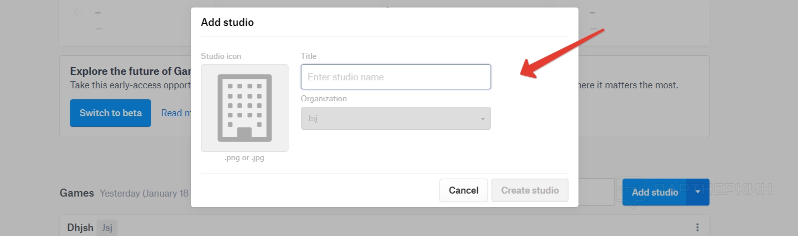 Для добавления студии достаточно указать ее название — данные об организации пользователи указывают в процессе регистрации.
