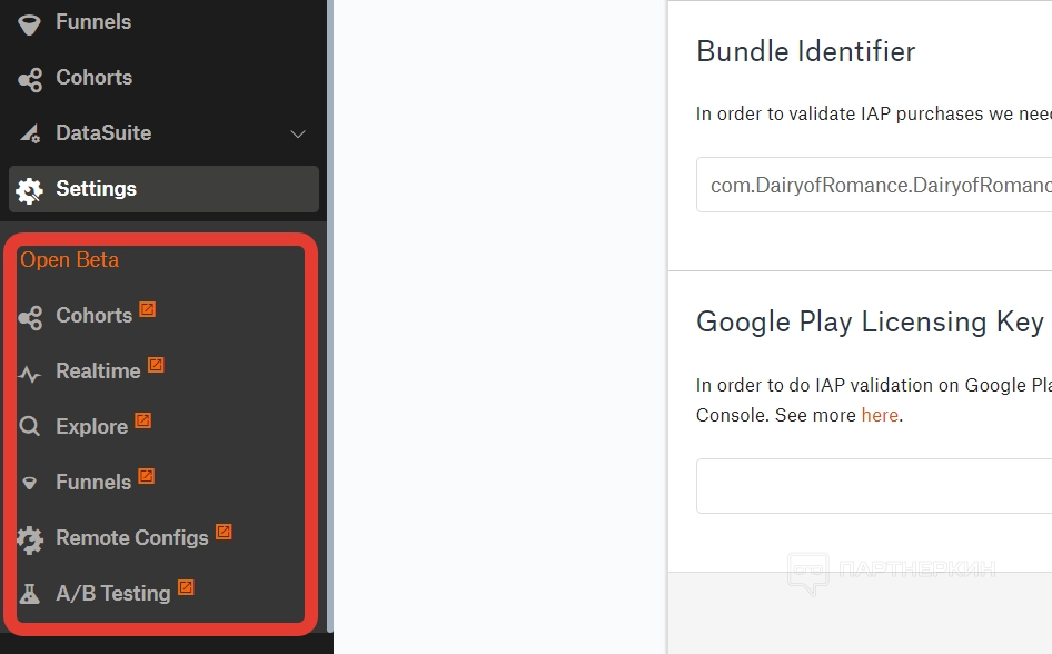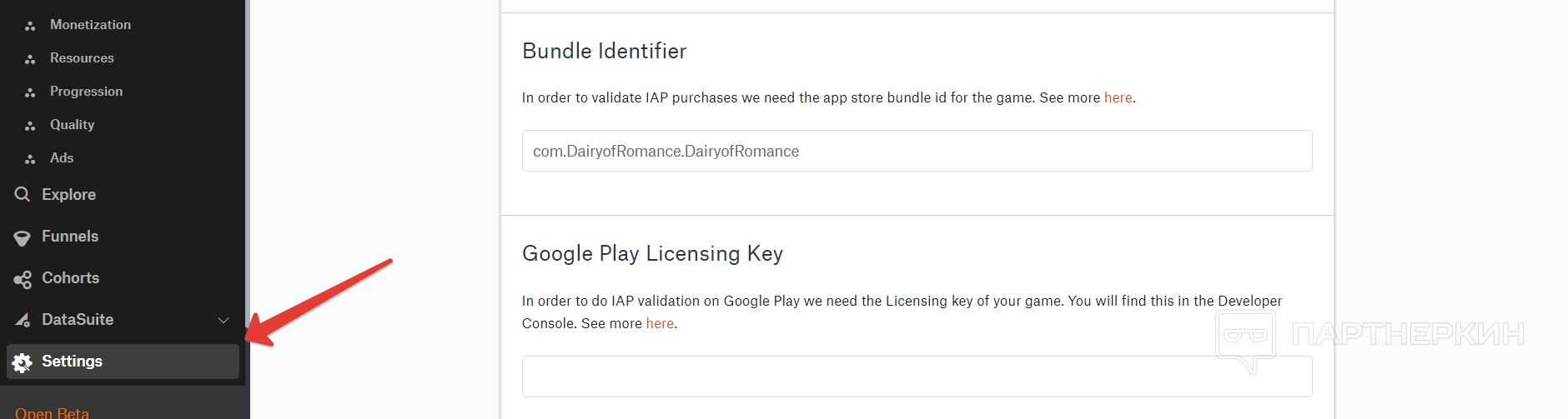 Настройки — финальный раздел, в котором можно просмотреть и откорректировать настройки игры, которую пользователь добавил. Например, добавить лицензионный ключ Google Play или посмотреть секретный ключ игры.