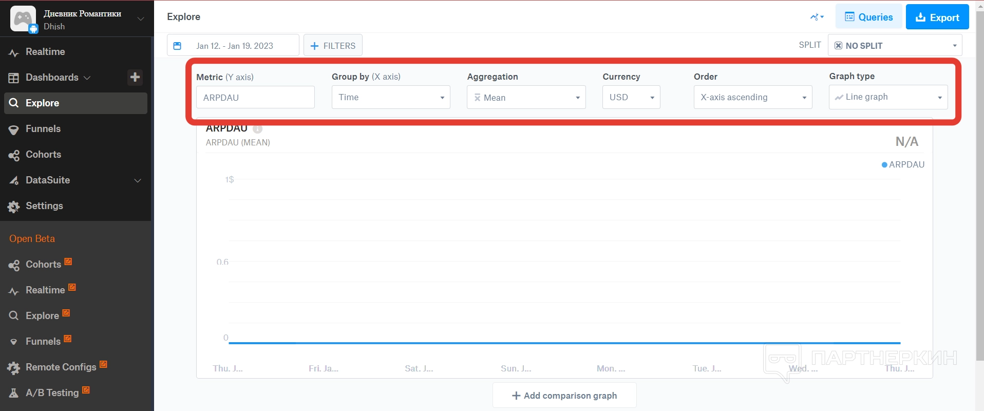 Исследование — это следующий пункт после дашборда, в котором можно посмотреть исследования по основным метрикам. При этом метрики можно выбирать самостоятельно из списка, чтобы просматривать только те, что актуальны.
