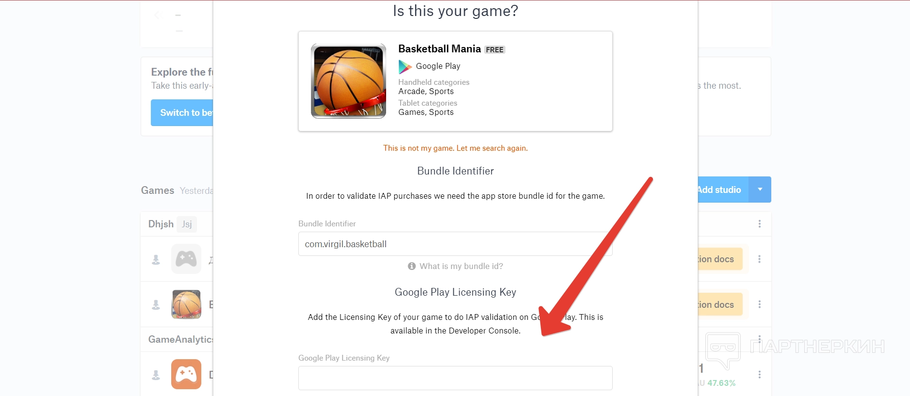 Для добавления игры можно, но необязательно, указать лицензионный ключ — он находится в кабинете разработчиков. Если пользователь его укажет, то он подтвердит владение игрой, если нет, то сама панель с показателями откроется, но данных в ней не будет. Поэтому важно подтвердить то, что пользователь является разработчиком игры.