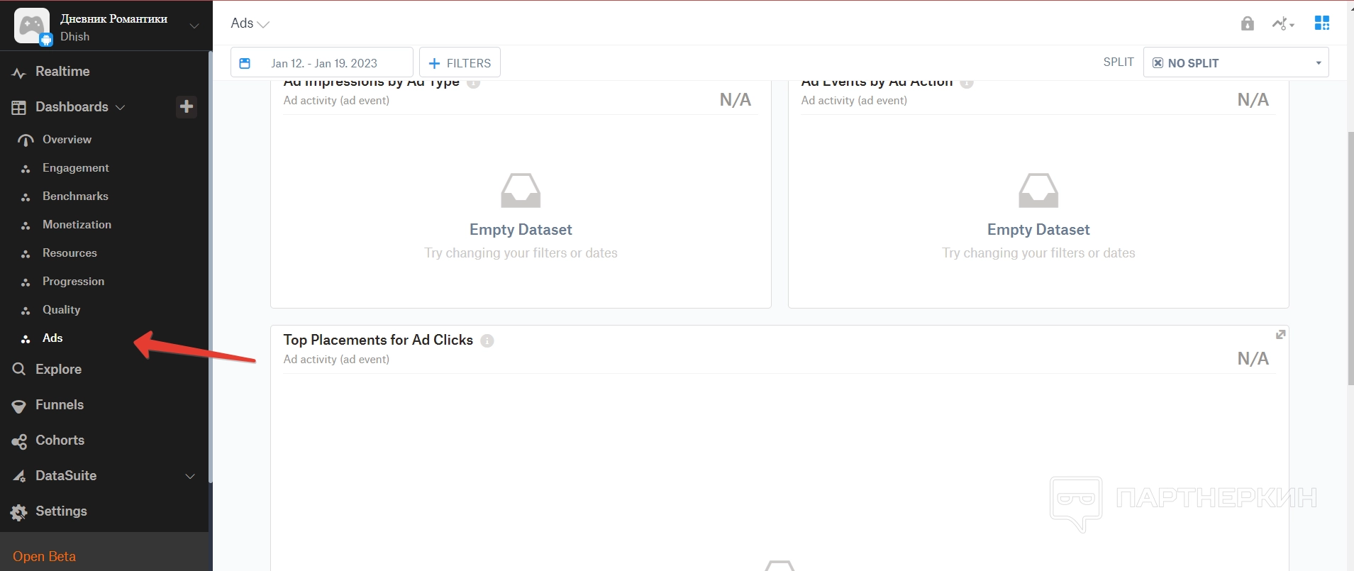 Объявления — это интересный пункт, так как позволяет проанализировать все и рекламу игры, а также какие результаты она приносит.