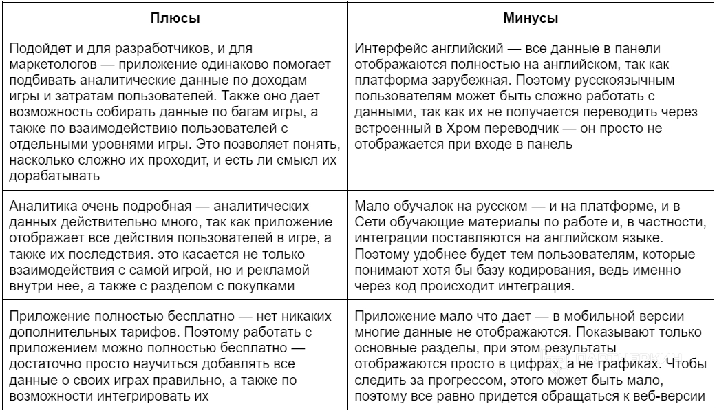Плюсы и минусы GameAnalytics
