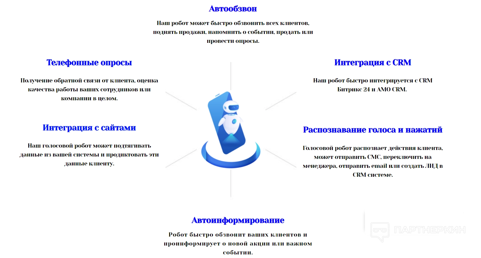 | С помощью сервиса можно значительно ускорить обзвон клиентской базы для оповещения, сбора обратной связи или реакций на новые продукты и услуги. Это позволит сэкономить время и силы, которые можно потратить на другие задачи | Для регистрации на сервисе и дальнейшего сотрудничества необходимо связываться с поддержкой. Хотя это можно рассматривать как недостаток, на самом деле это позволяет персонализировать инструмент под нужды пользователей, что улучшает его эффективность и удобство использования |