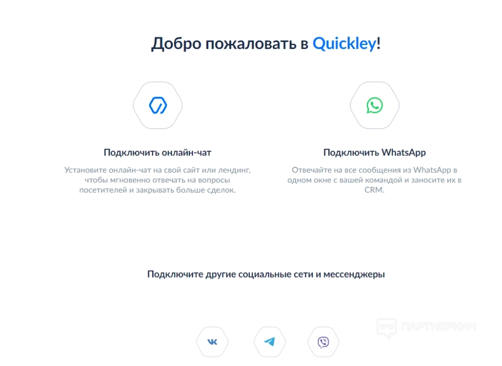 Quickleyинтегрируется с популярными социальными сетями и мессенджерами, что упрощает процесс общения с клиентами. Сервис поддерживает такие популярные мессенджеры, как WhatsApp, Telegram, Viber, а также онлайн-чат на сайте компании и группы ВКонтакте. Помимо этого, интеграции можно настроить через API в настройках пользователя, чтобы подключиться к своим магазинам и сделать управление ими более удобным.