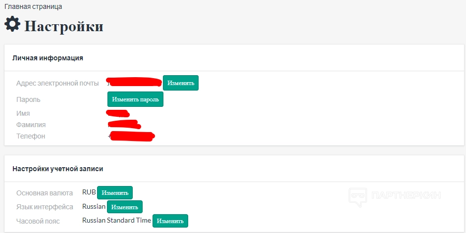 В настройках учетной записи можно поменять основную валюту, язык интерфейса и часовой пояс.