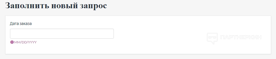 В форме нужно указать дату заказа: