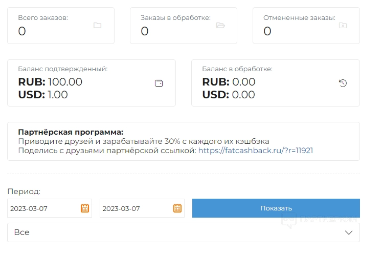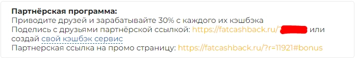 Да, платформа FatCashback предоставляет 100 рублей на бонусный баланс. При желании пользователь может получить дополнительный заработок при участии в партнерской программе.