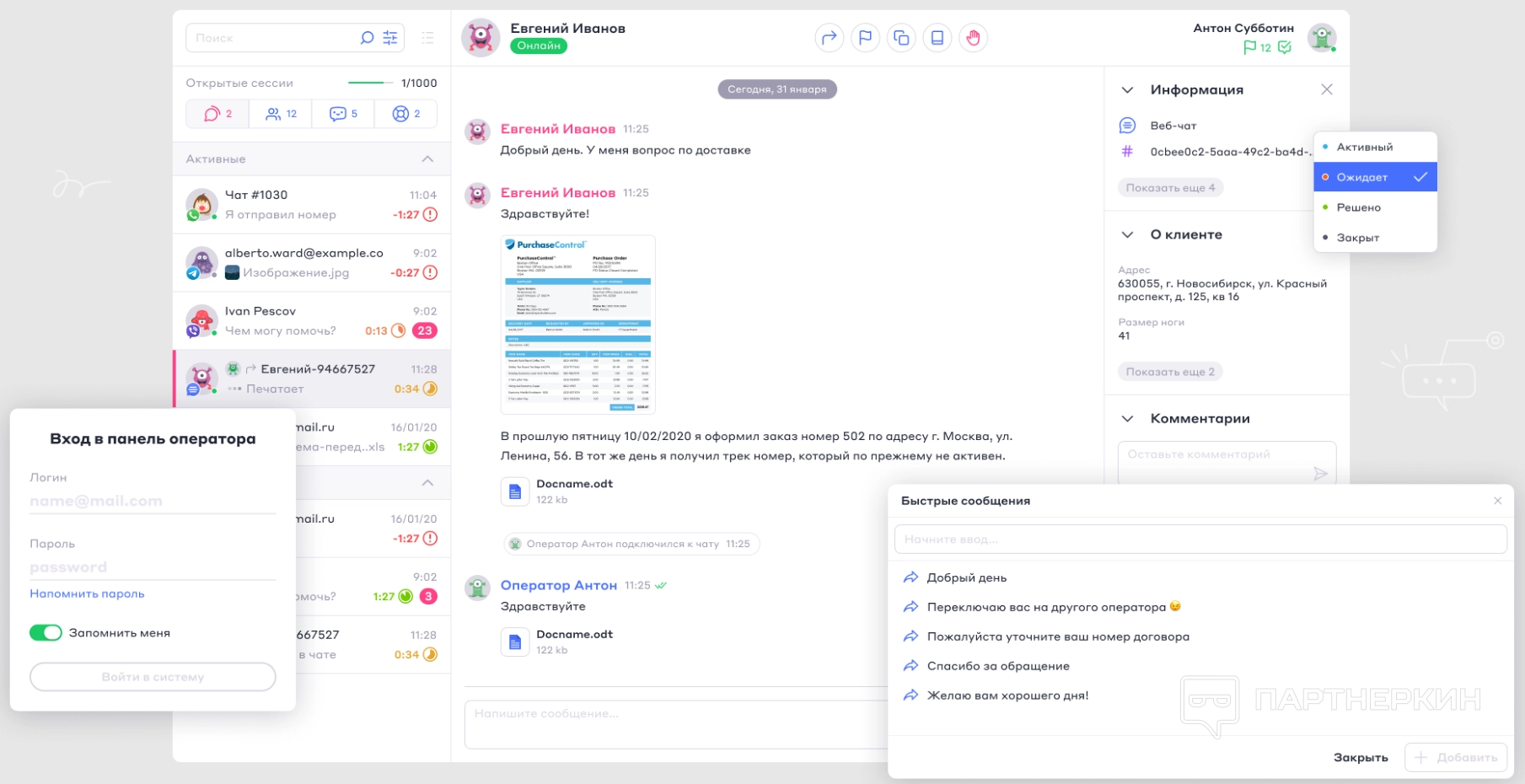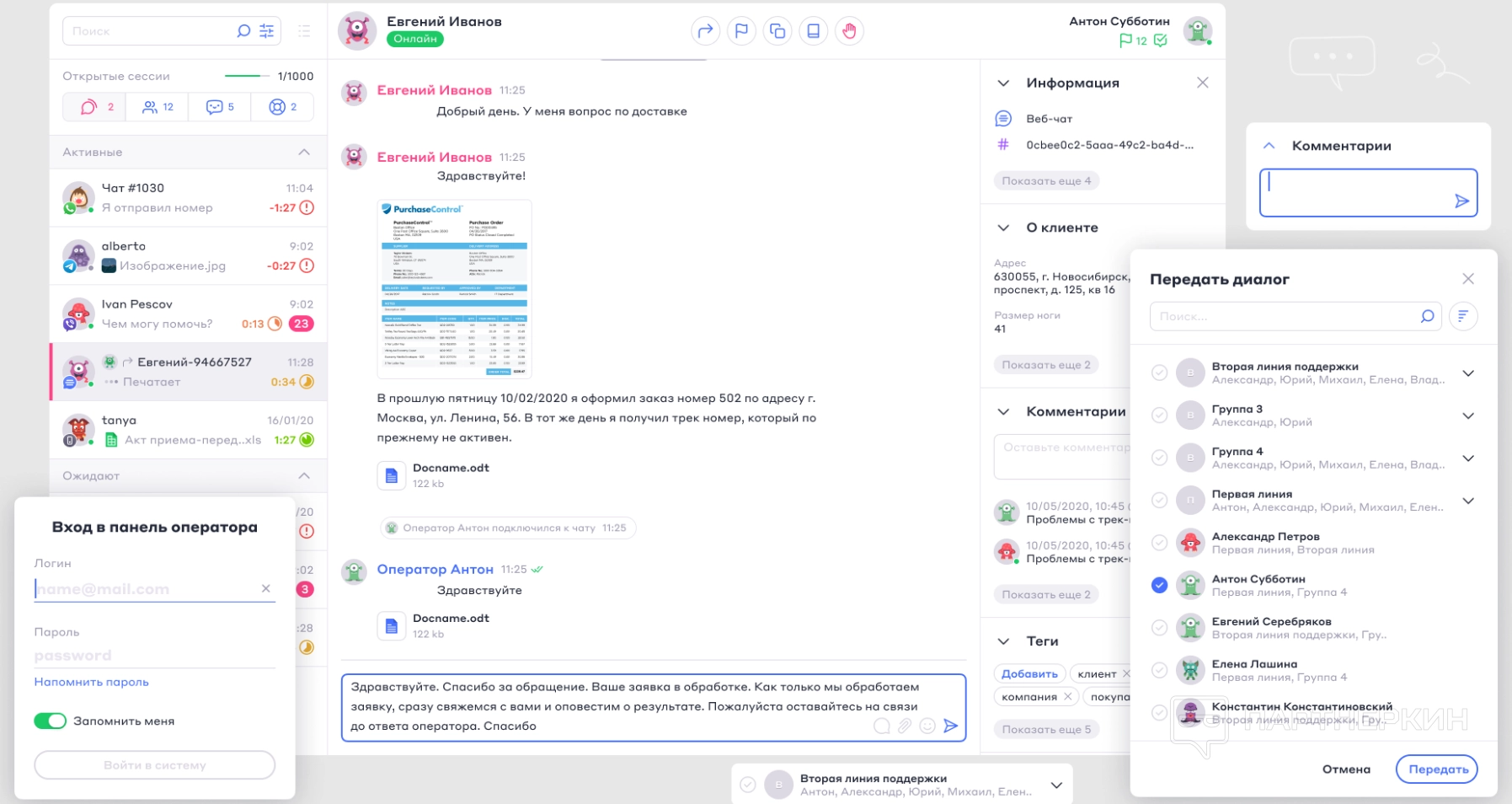 Инструмент объединяет переписку клиентов с операторами компании в едином интерфейсе. Вся информация отображается в одном месте.