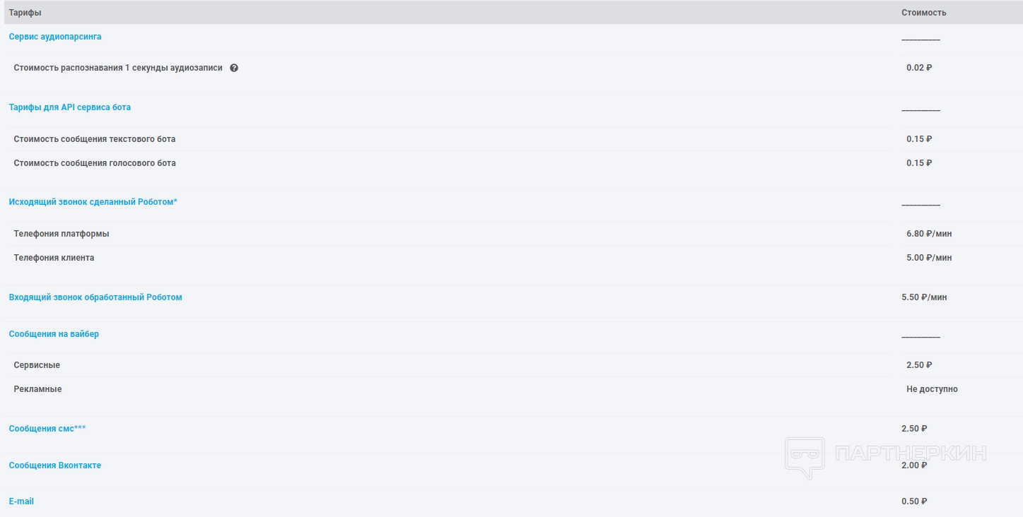 Стоимость зависит от выбранной услуги. Цена на основные тарифы выглядит так: