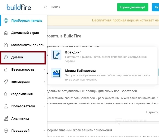 В разделе дизайна приложение полностью подгоняется под желаемую цветовую гамму, добавляются мультимедиа.