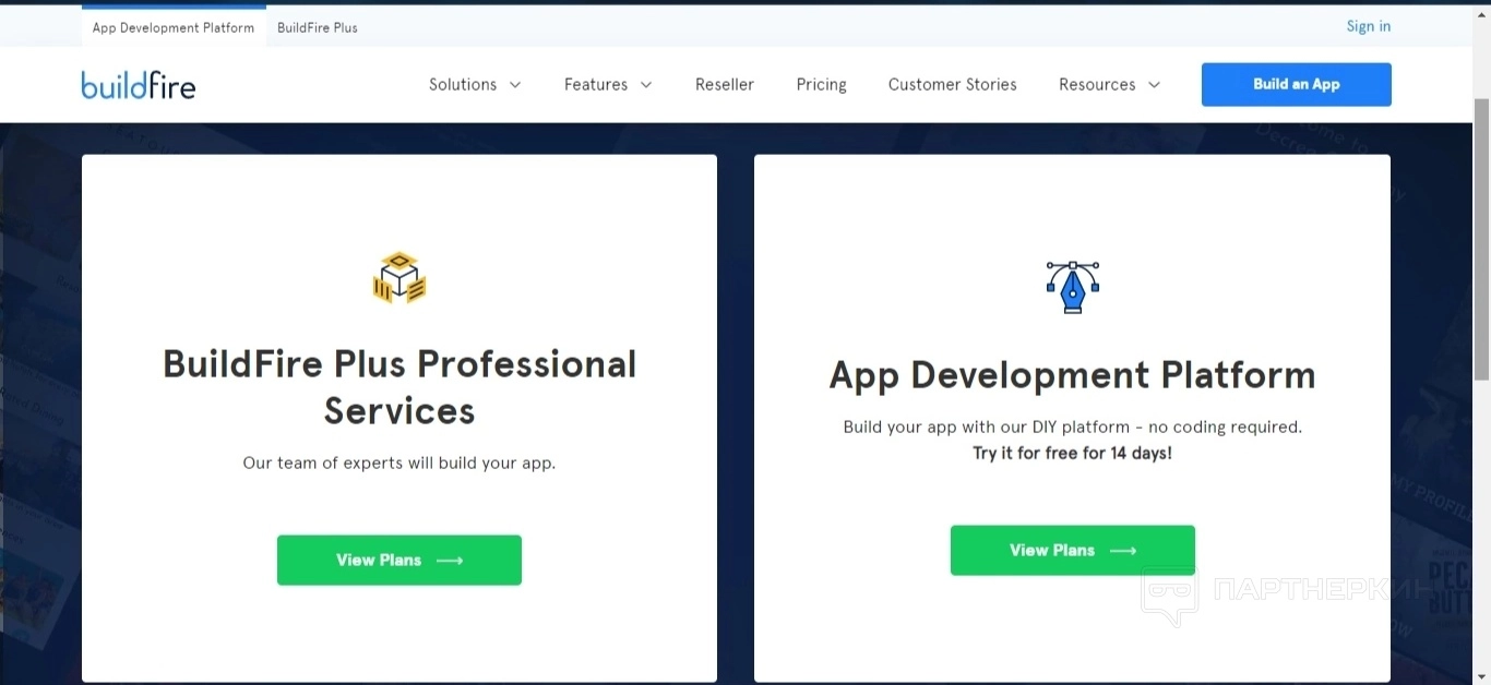 Раздел с прайсами открывает доступ к тарифным планам сервиса и включает в себя две категории: тарифы для самостоятельного создания приложений и профессиональный