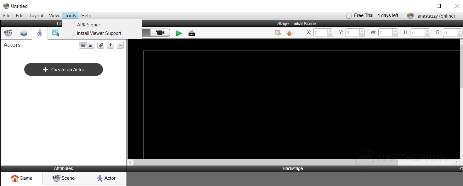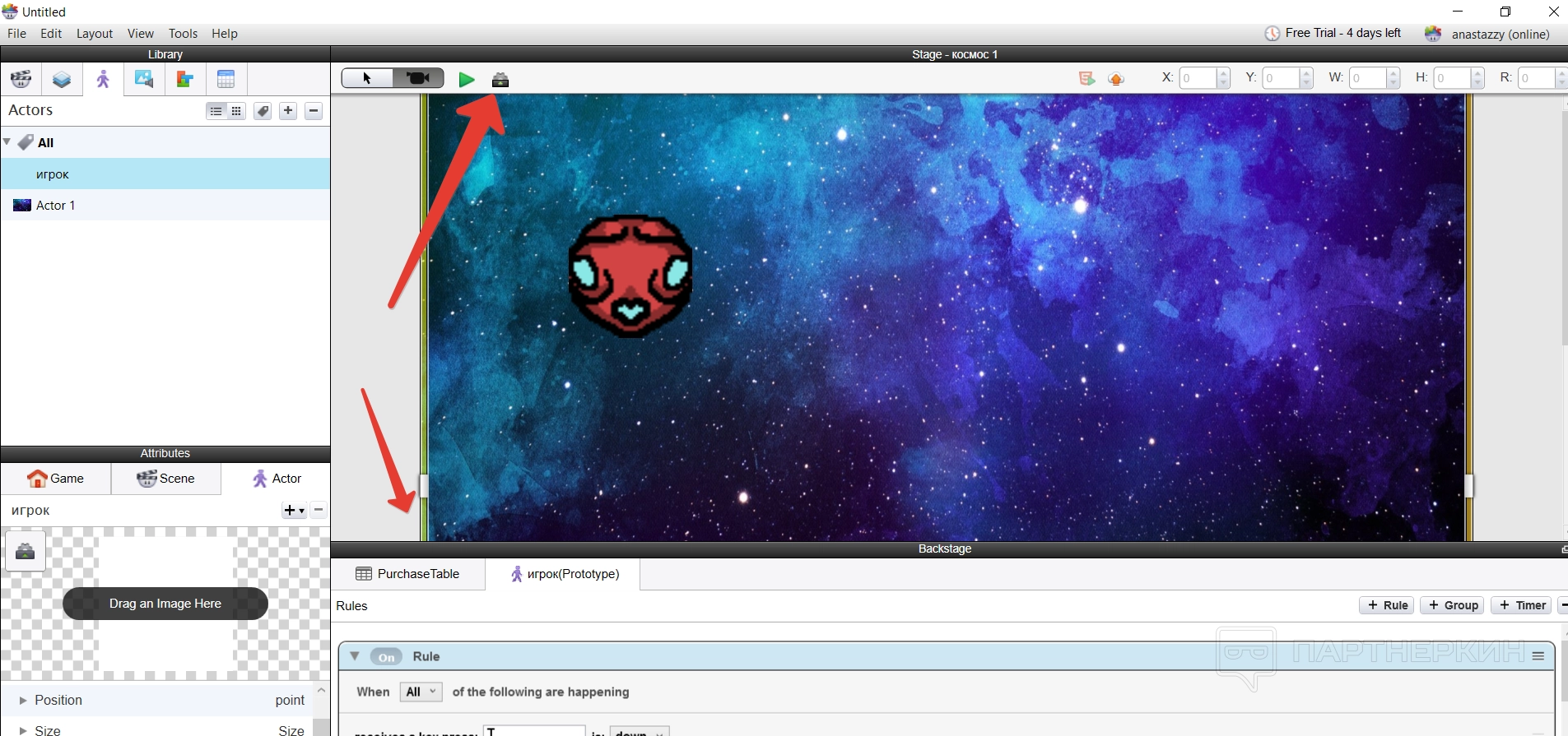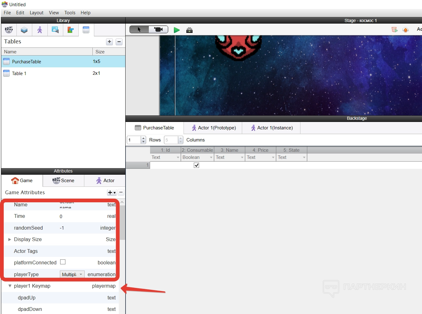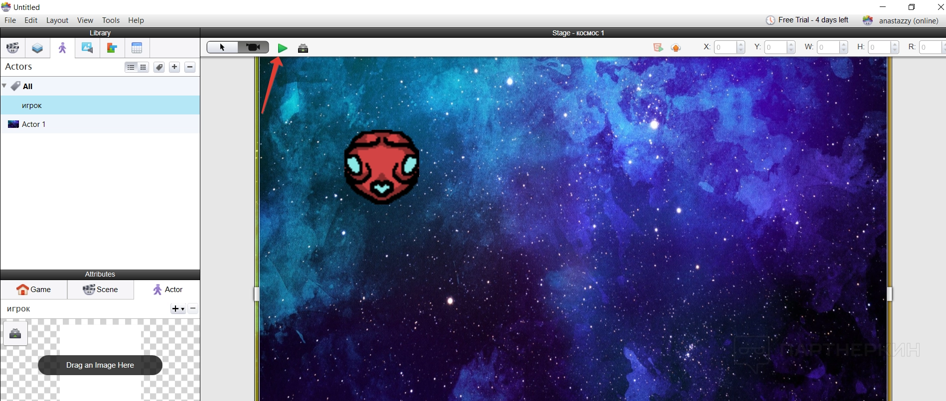 Все построение игры основывается на создании новых актеров — игроков — и их расположении на сцене. Делается все достаточно просто — нужно создать нового актера и указать его имя.