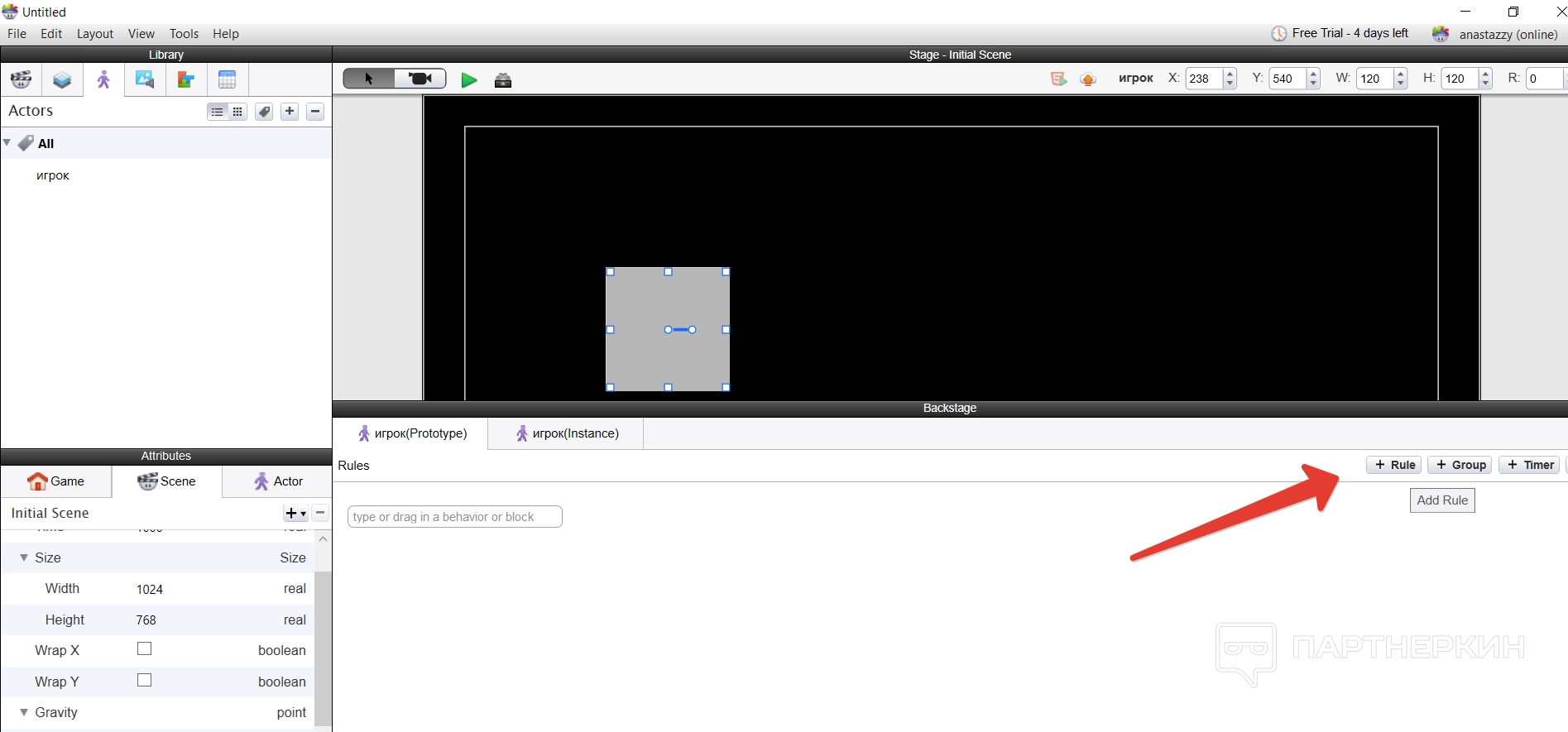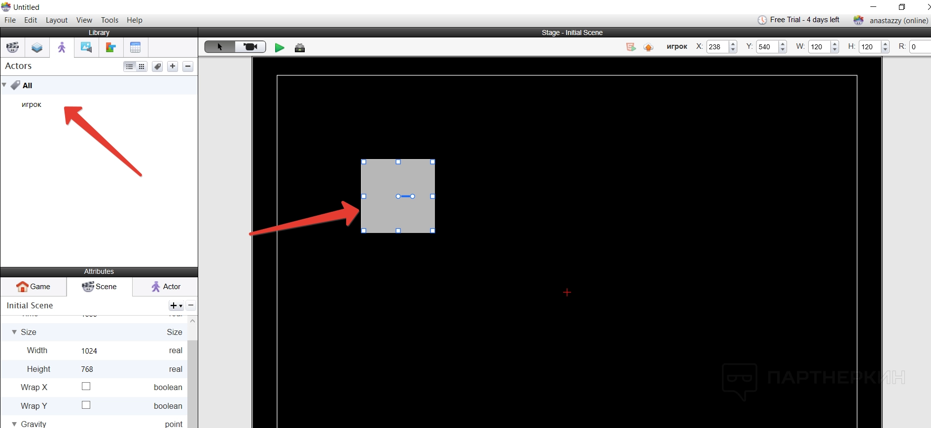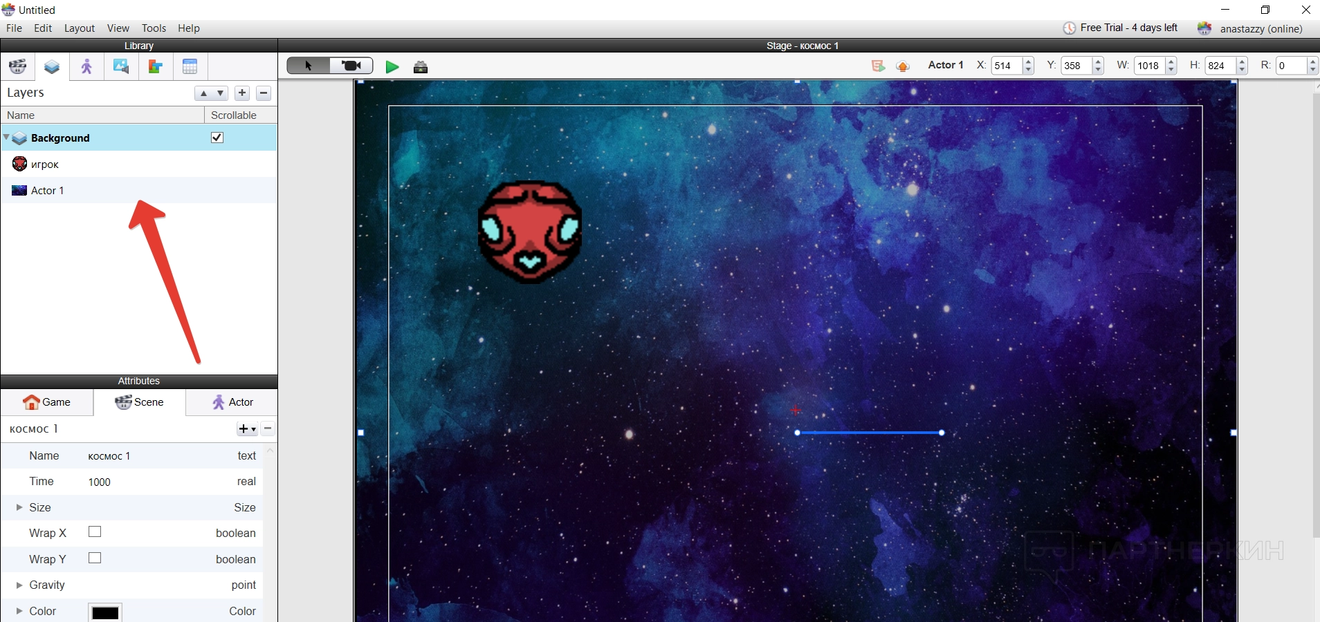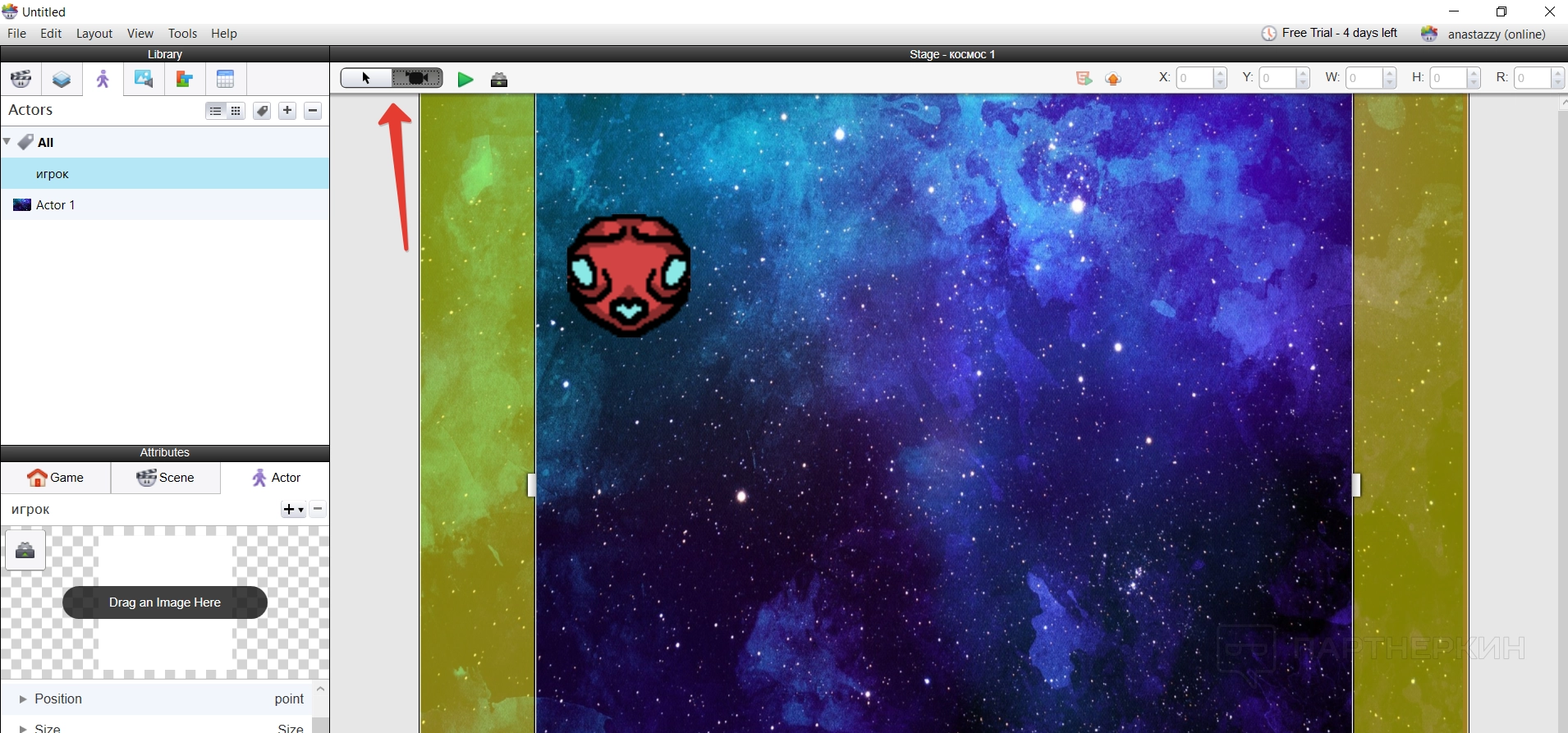 Все построение игры основывается на создании новых актеров — игроков — и их расположении на сцене. Делается все достаточно просто — нужно создать нового актера и указать его имя.