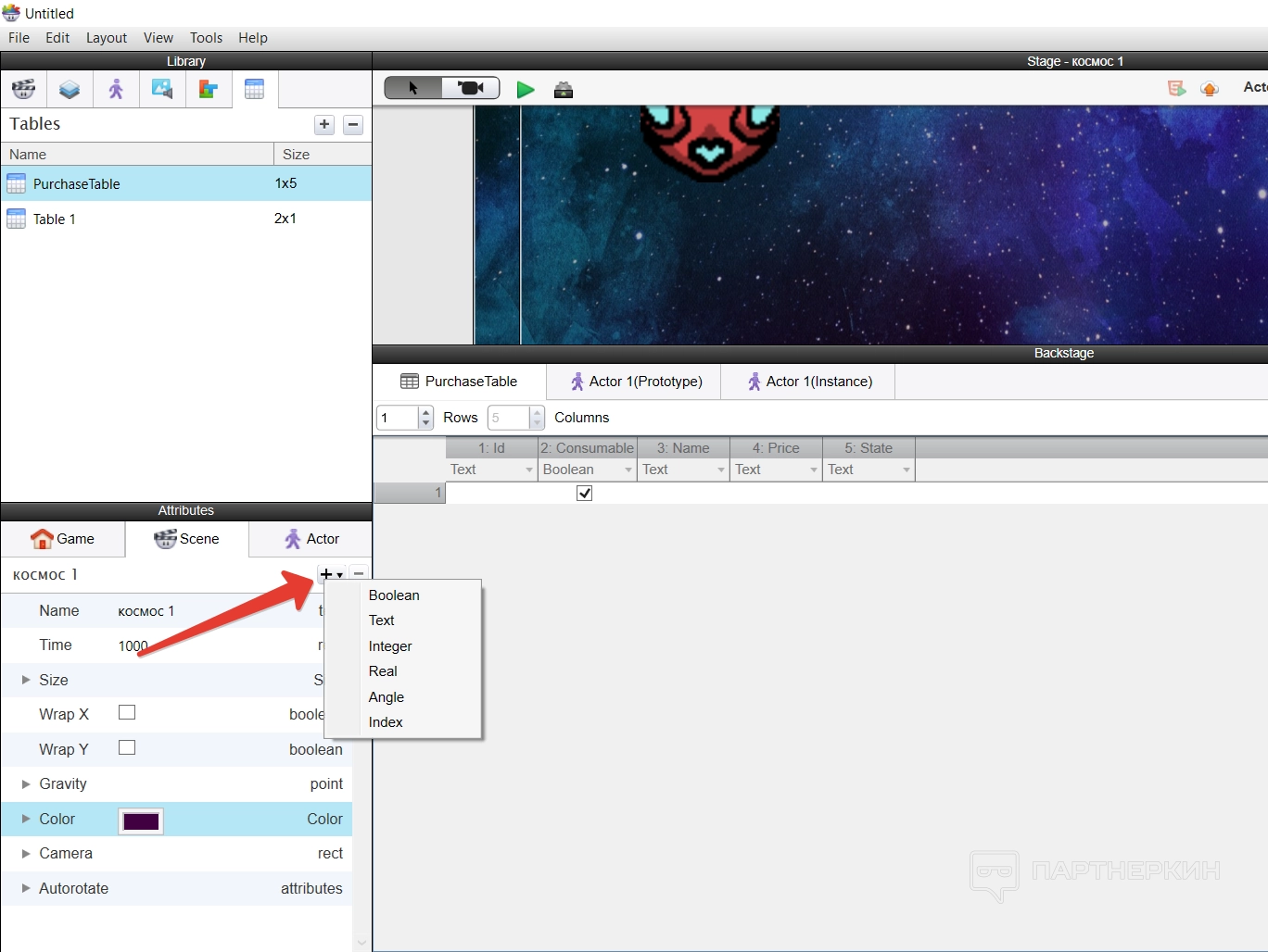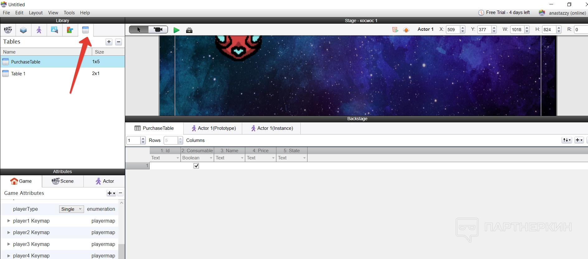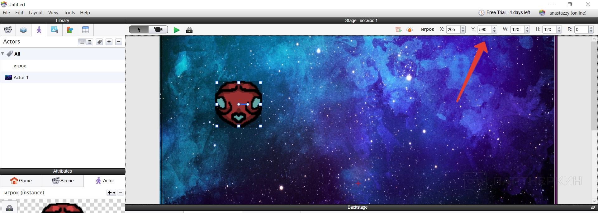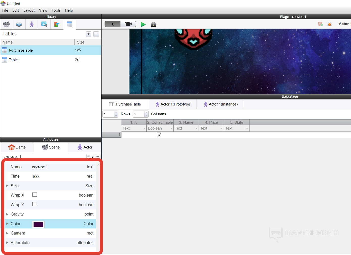 Все построение игры основывается на создании новых актеров — игроков — и их расположении на сцене. Делается все достаточно просто — нужно создать нового актера и указать его имя.