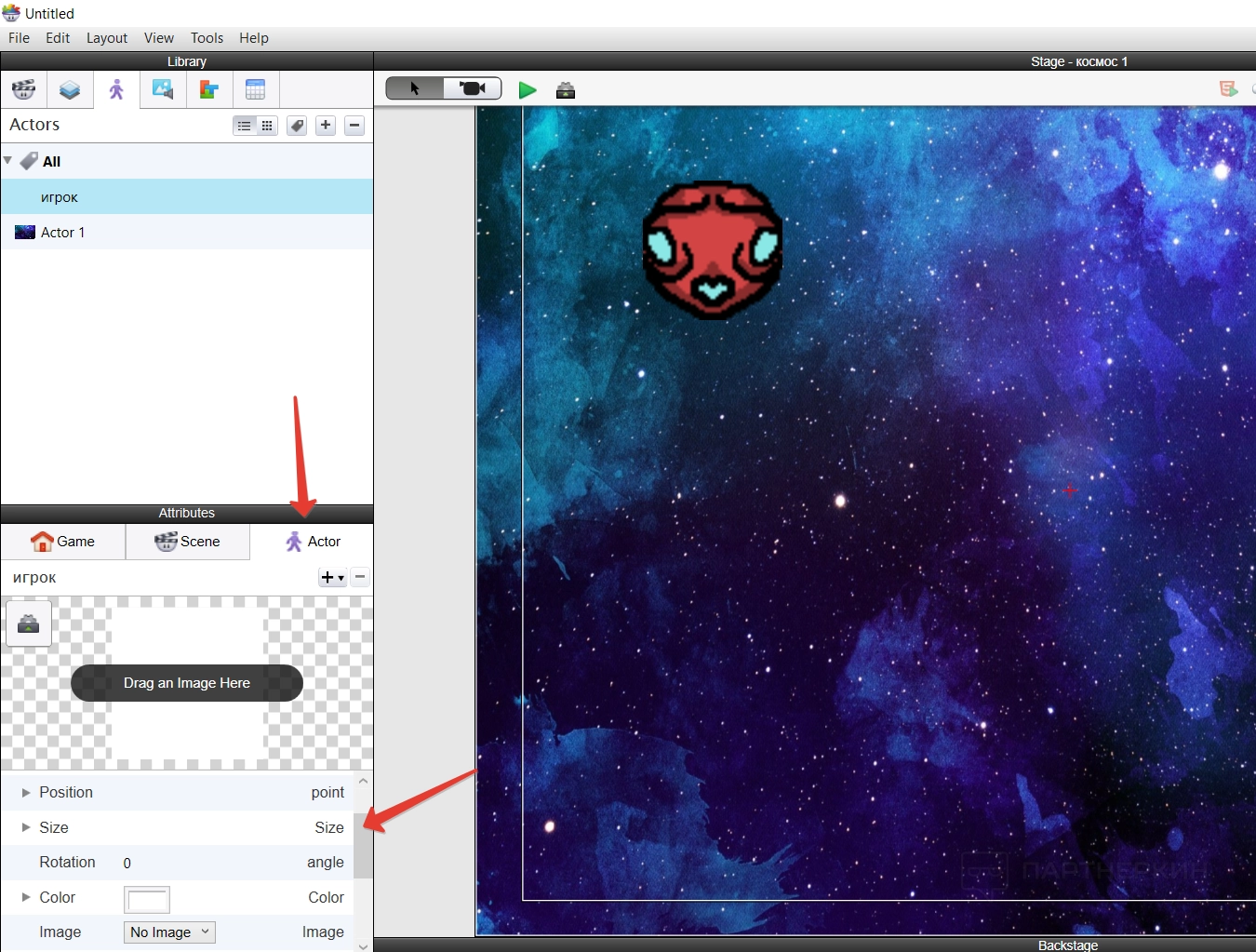 - color — здесь либо задается цвет актера, либо подбирается изображение для него;