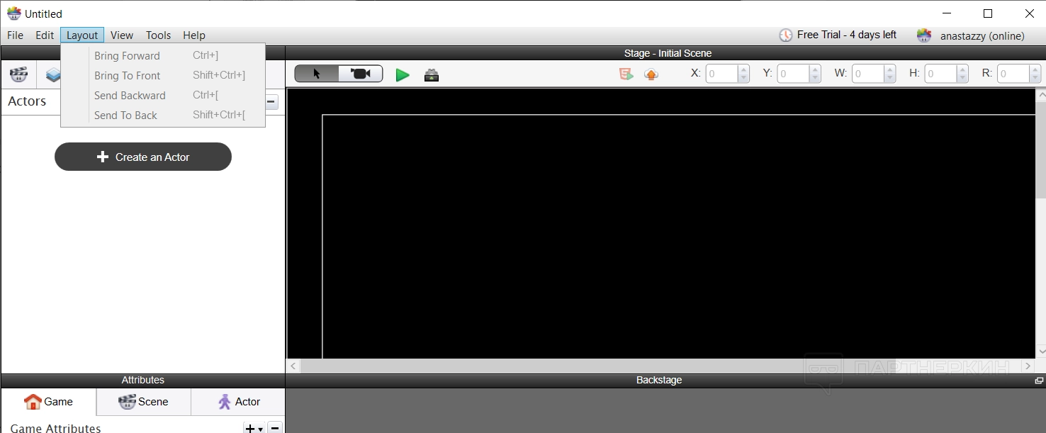 Слои — это как раз та функция, о которой мы говорили выше. Если не хочется перемещать актеров щелчком мыши, ведь когда предметов много, это займет много времени, то тогда можно использовать этот раздел. В нем пользователь может увидеть иерархию предметов в игре — что расположено выше, а что ниже. При необходимости он может просто поменять местами определенные предметы.