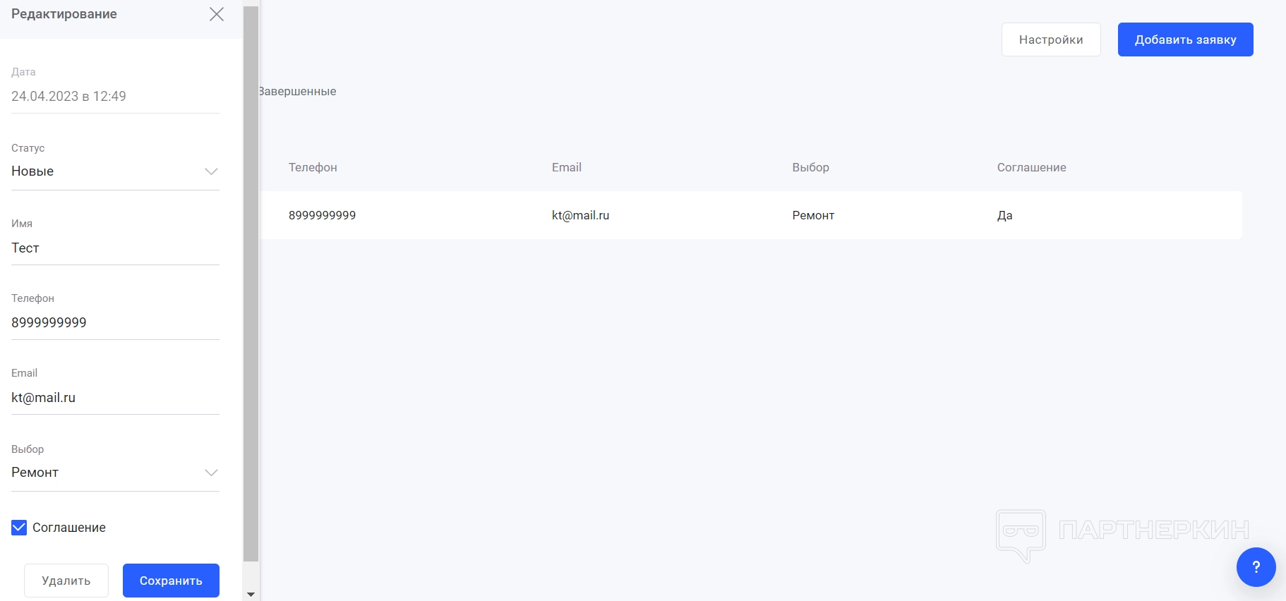 Интересным пунктом также является внутренняя CRM-система, которая позволяет контролировать заявки и производить первичную кластеризацию. Это больше полезно будет интернет-магазину, либо коммерческому бизнесу, но на различных запусках, тренингах (ради которых и делается иногда арбитраж и прогрев трафика) тоже полезная вещь.