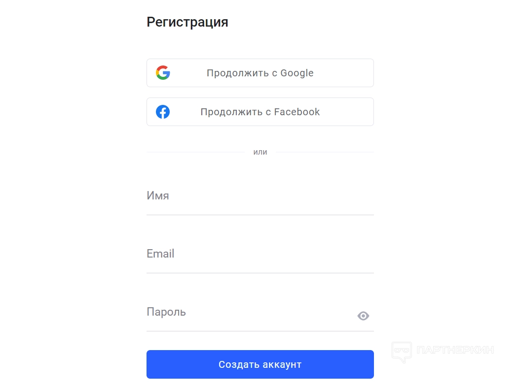Сразу после этого можно будет приступать к регистрации — можно авторизоваться как по адресу электронной почты, так и через Google или Facebook*. Благодаря такому решению можно заводить несколько аккаунтов на каждый из офферов со сроком жизни до 2 недель — к сожалению, каждый раз настройку нужно будет производить заново, потому что в бесплатной версии выгрузка сайта недоступна.