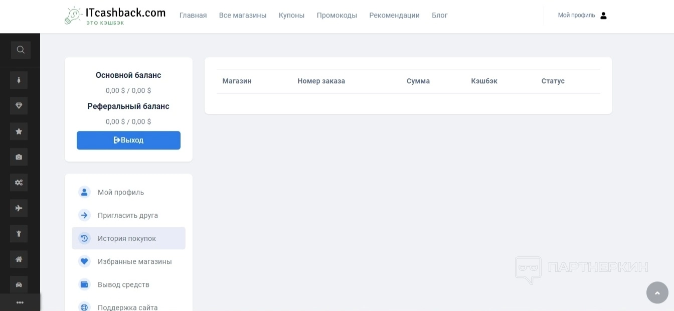 В Истории покупок можно отслеживать все свои заказы и их статус, сумму кешбэка с покупки и так далее.