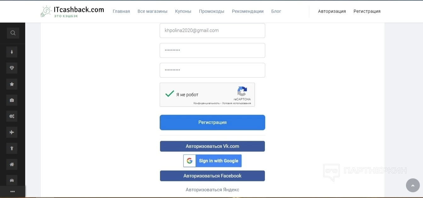 Зарегистрироваться пользователю можно с помощью своего почтового ящика или с помощью готовых аккаунтов в ВКонтакте, Google, Facebook* или Яндексе.