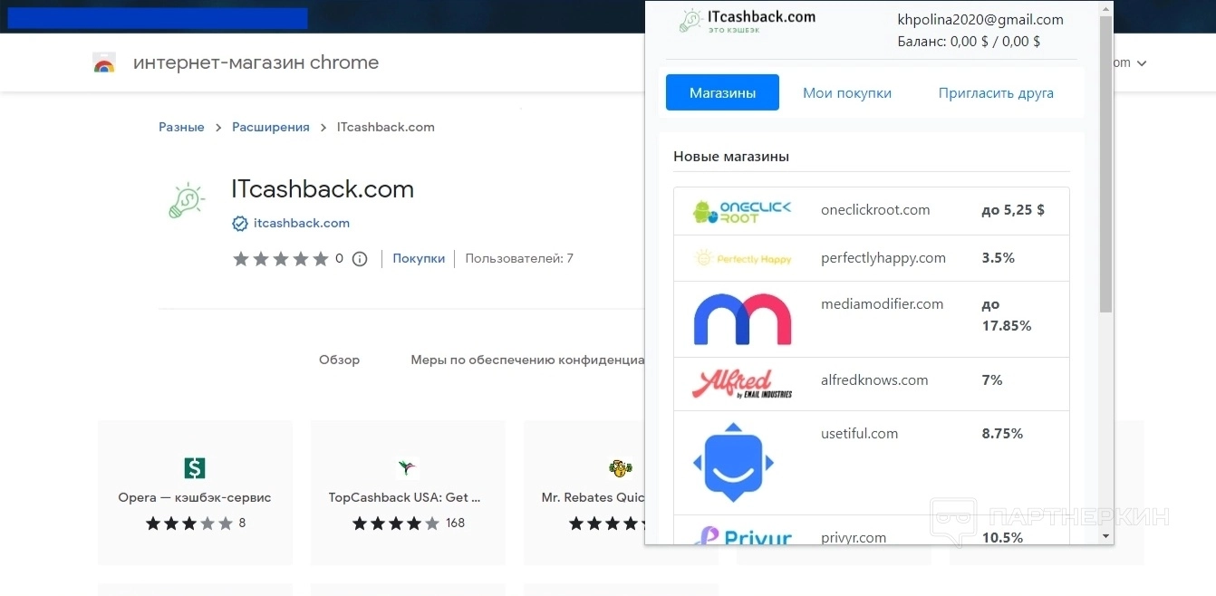 Все основные разделы и данные в расширении присутствуют, но полный список магазинов все равно открывается на сайте.