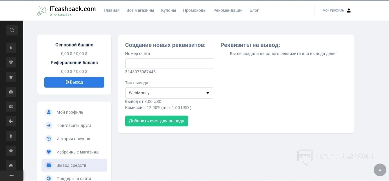 К сожалению, на данный момент вывод доступен только на кошелек WebMoney. Весь заработанный кешбэк с покупок или реферальной программы исключительно в долларах.
