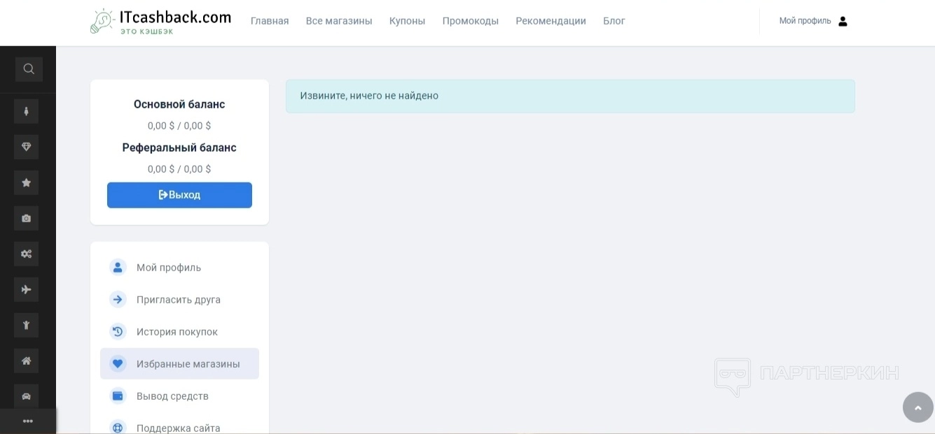 Главная страница сервиса после авторизации дублирует страницу со списком всех магазинов-партнеров.