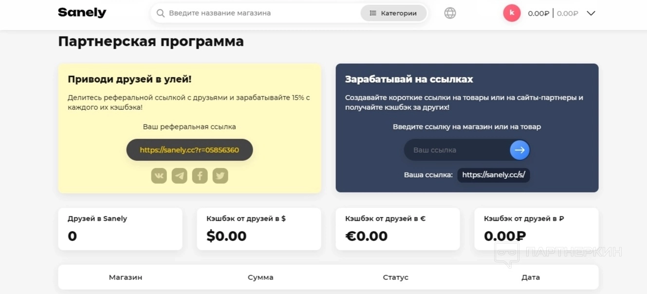 Заработать также можно и на партнерской программе, которая предусмотрена сервисом. С приглашенных друзей можно получить до 15% от их кешбэка. Также можно создавать свою собственную ссылку на магазин или товар.