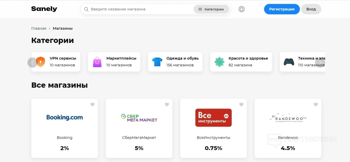 У сервиса достаточно обширный список партнеров и категорий, с которыми он работает. У платформы более 800 магазинов, с которыми есть сотрудничество по всему миру. Для пользователей они подбираются с учетом ГЕО, указанного в настройках профиля. Среди них есть и популярные маркетплейсы, товары для любой категории граждан, финансы и страхование, подарки и многое другое.