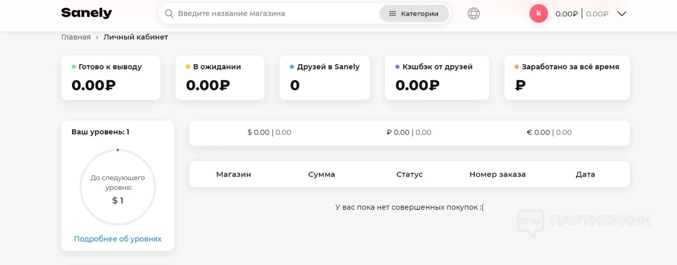 В расширении представлены те же магазинов-партнеры, что и на сайте, только в упрощенном виде. Переходить на них можно прямо из всплывающего окна, а кешбэк будет зачисляться на персональный счет в Sanely.
