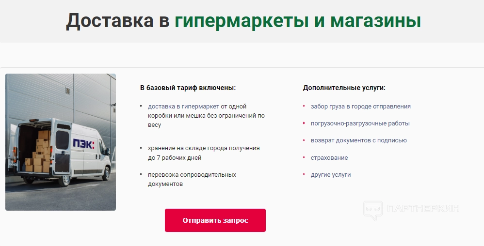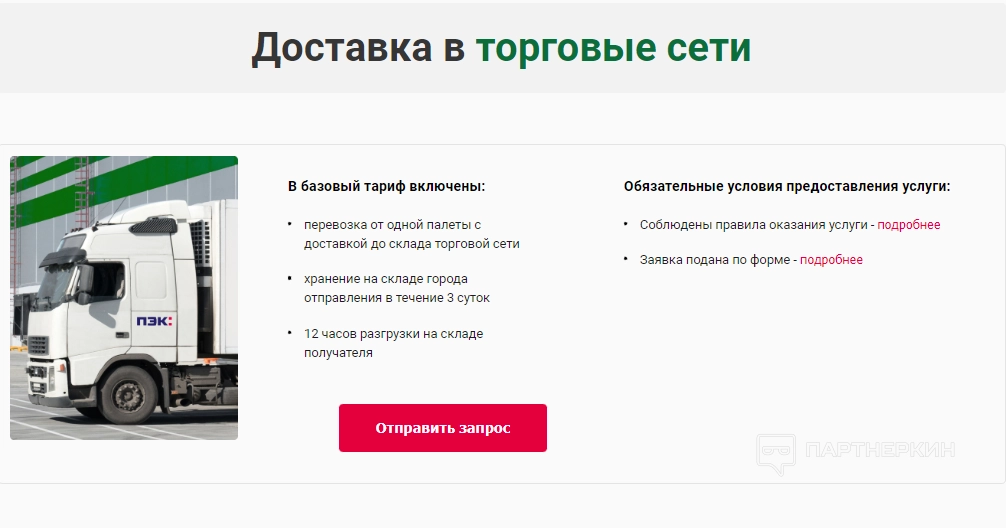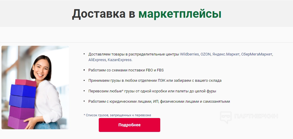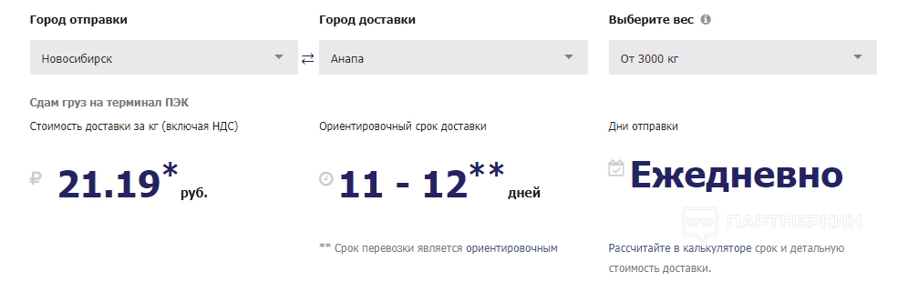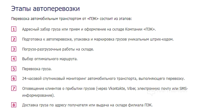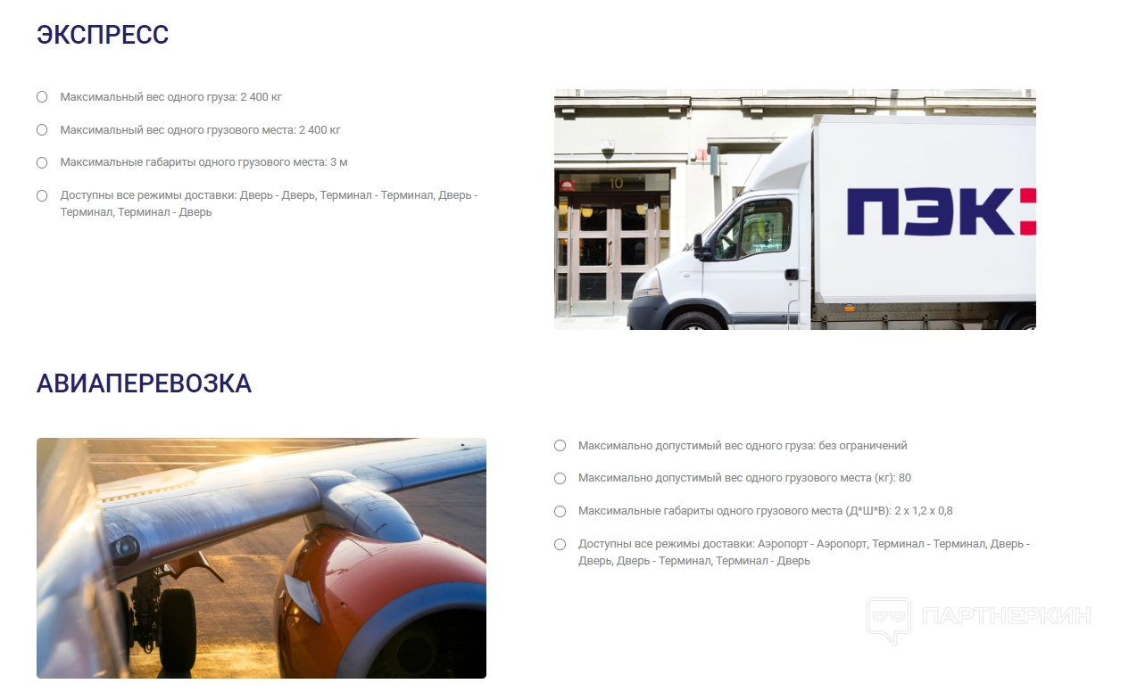 — один из ведущих логистических операторов на рынке России и СНГ. Компания предоставляет широкий спектр услуг по доставке грузов (автомобильные железнодорожные, авиа). Сервис подходит для малого и среднего бизнеса, крупных компаний и частных лиц. Официальные представительства ПЭК открыты в Армении, Беларуси, Казахстане, Узбекистане, Таджикистане, Турции и Китае. Каждый день услугами мультисервисного оператора пользуются 4.5 млн клиентов.