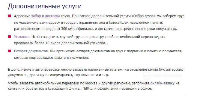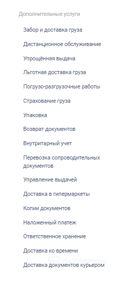 предоставляет множество дополнительных услуг: от забора и доставки груза до дистанционного обслуживания и упрощенного хранения. Рассмотрим их подробнее.