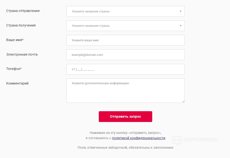 Чтобы воспользоваться международными перевозками, потребуется заполнить форму. Нужно заполнить поля: