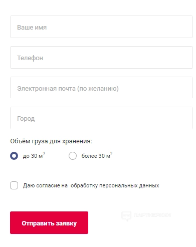 Чтобы воспользоваться услугой складского хранения, необходимо в специальной форме указать следующие данные: