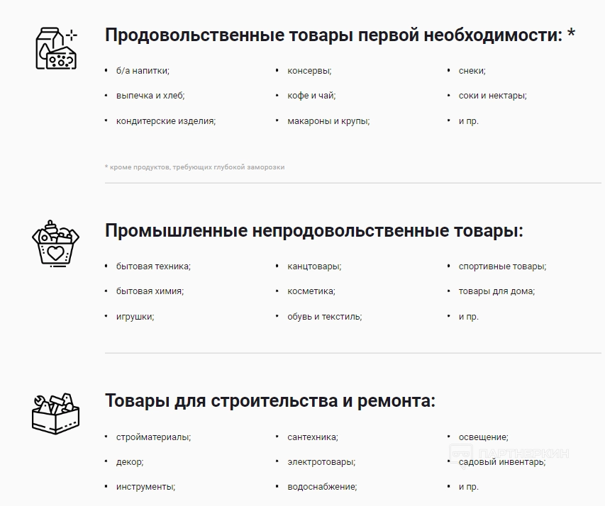 решает любые логистические задачи клиентов, оказывая всесторонний профессиональный сервис. Компания доставляет продовольственные товары первой необходимости, промышленные непродовольственные товары, товары для строительства и ремонта.