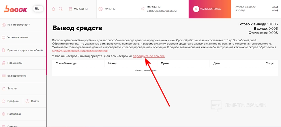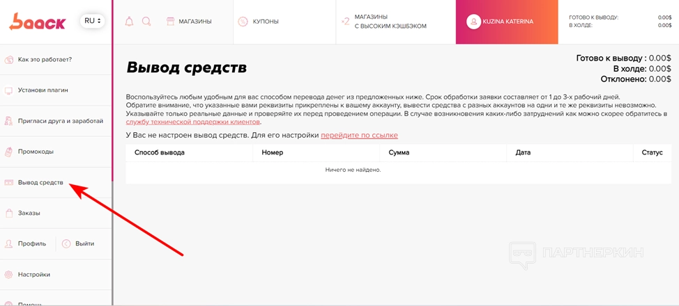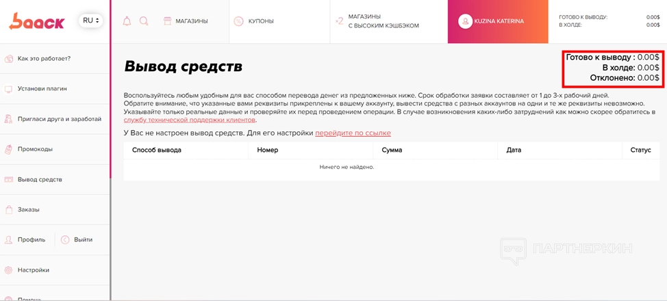 Обратите внимание, что у сервиса два счета: «Готово к выводу» и «В холде». Пока товар не оплачен, сумма возврата будет находиться на заморозке. Как только магазин получит деньги за покупку, счет «Готово к выводу» увеличится. Сумма поступит в течение 24 часов.