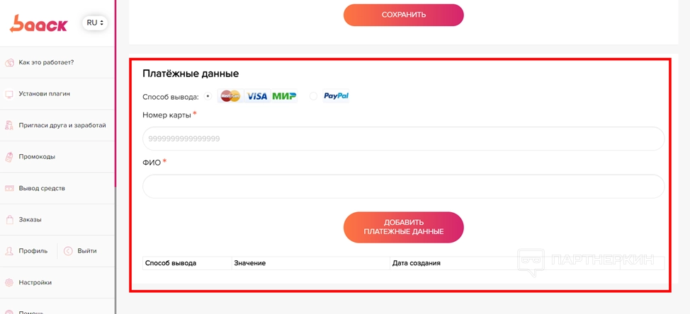 Для перевода кэшбэка доступно несколько вариантов: банковская карта (VISA, MasterCard, МИР) и PayPal. Минимальная сумма вывода составляет ₽300. Срок обработки заявки занимает 1-3 дня.