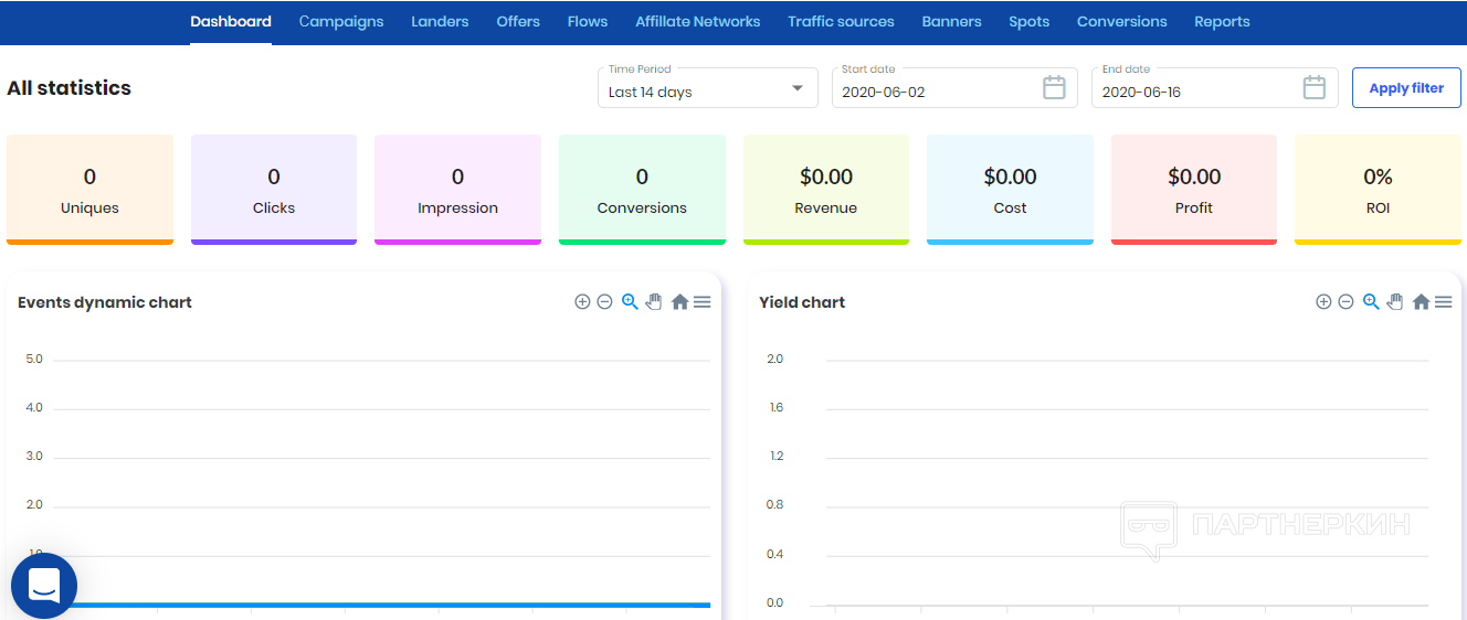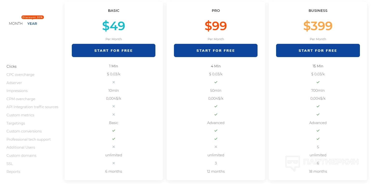 - Basic. Подойдёт для новичков в арбитраже, которые никогда не работали с программным софтом отслеживания. У вас будет адекватный лимит действий, базовый функционал и варианты таргетинга, пользовательские конверсии, неограниченное количество доменов, а также профессиональная техническая поддержка.