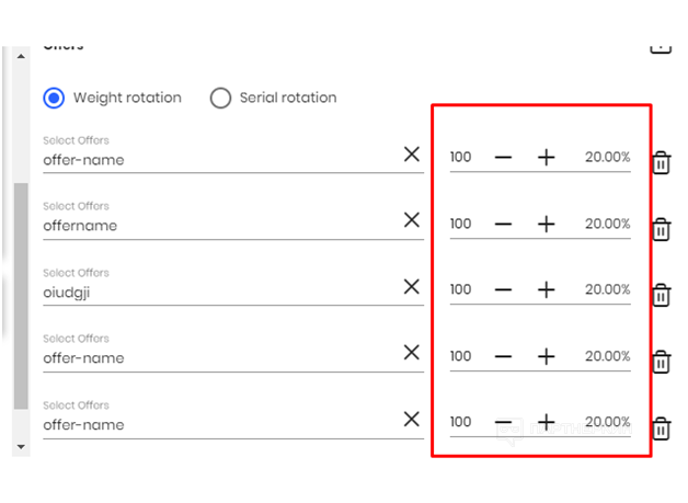 Для каждой новой кампании рекомендуется выбирать тип ротации — «weight» с равномерным распределением трафика между офферами. Таким образом, можно провести А/Б тестирование своей группы офферов и понять, какой из них будет наиболее прибыльным.