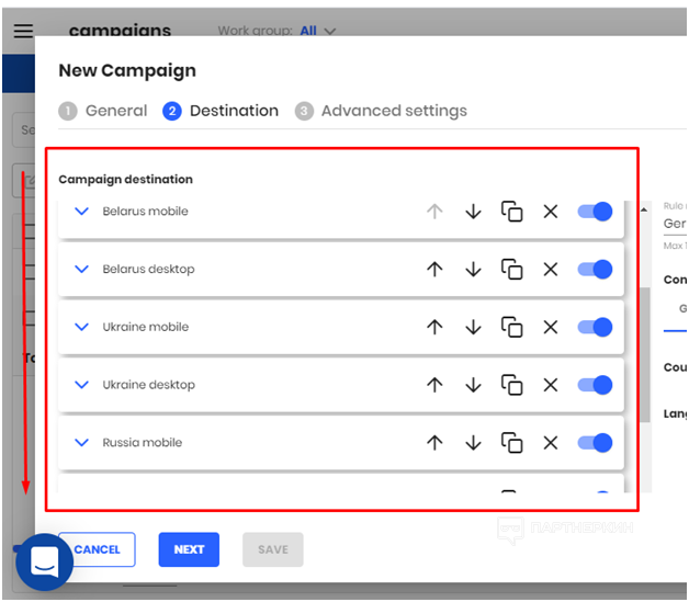 - Группа офферов 2. Гео Belarus. Допустимый трафик — десктоп;