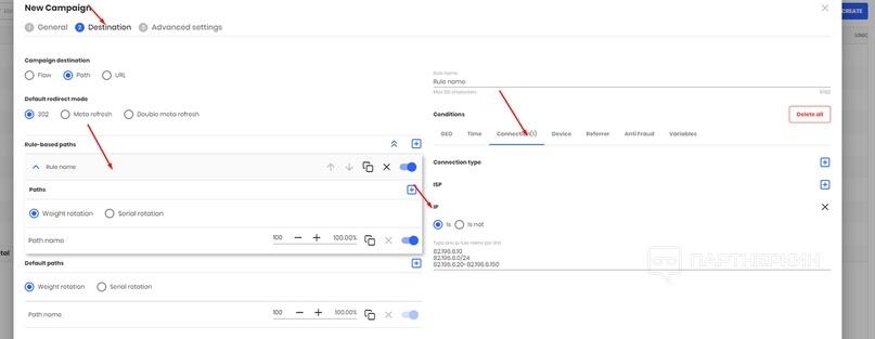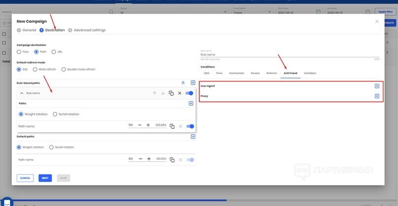 После настройки всех путей с правилами необходимо установить «Default path» для того трафика, который не пройдет ни по одному из правил. В дальнейшем его можно перепродавать или отправлять на какой-нибудь общий оффер/группу офферов, с помощью которых вы монетизируете остаточный трафик.