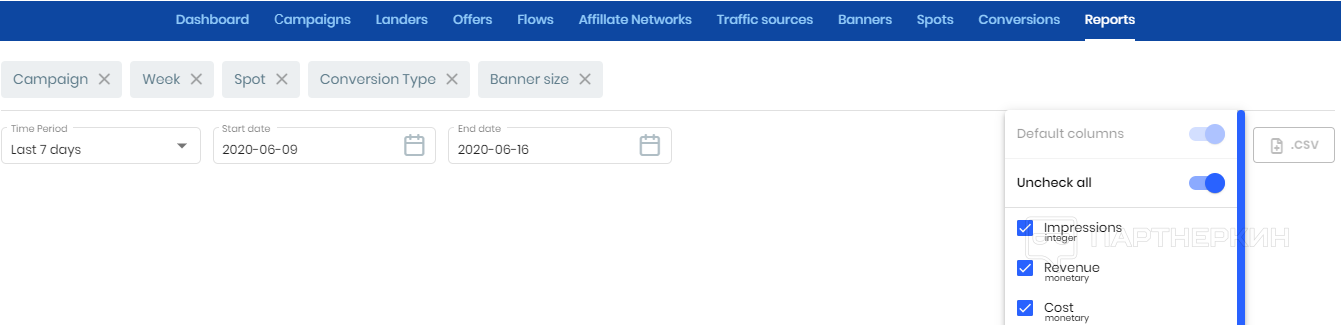 В трекере доступно более двадцати колонок с данными для анализа. Самые известные reports хранятся до 18 месяцев, в зависимости от тарифа. В любой момент арбитражник может скачать CSV файл и работать с ним дальше. А также трекер обещал выкатить шэринг reports и трансфер по API из трекера внешним юзерам.