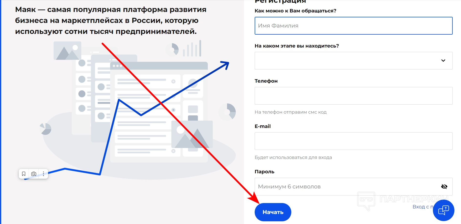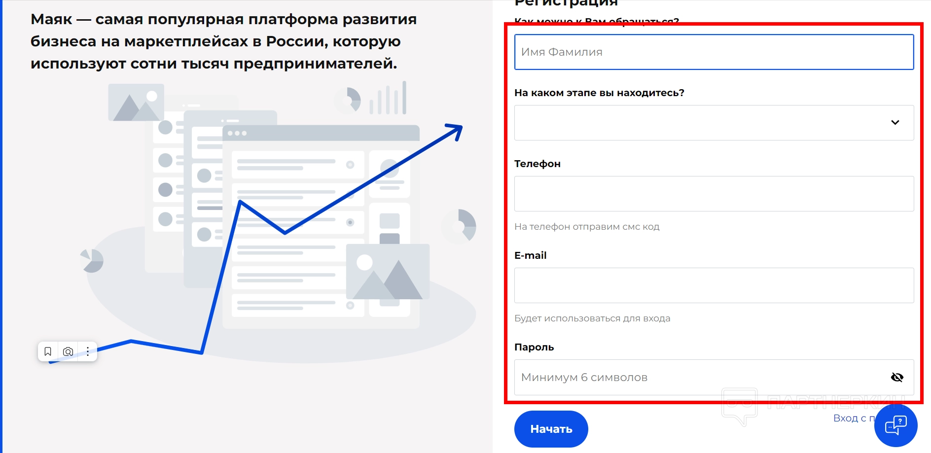 1. Укажите свое имя и фамилию, этап работы (менеджер маркетплейсов, начинающий владелец магазина предприниматель и так далее), номер телефона, адрес электронной почты, пароль.