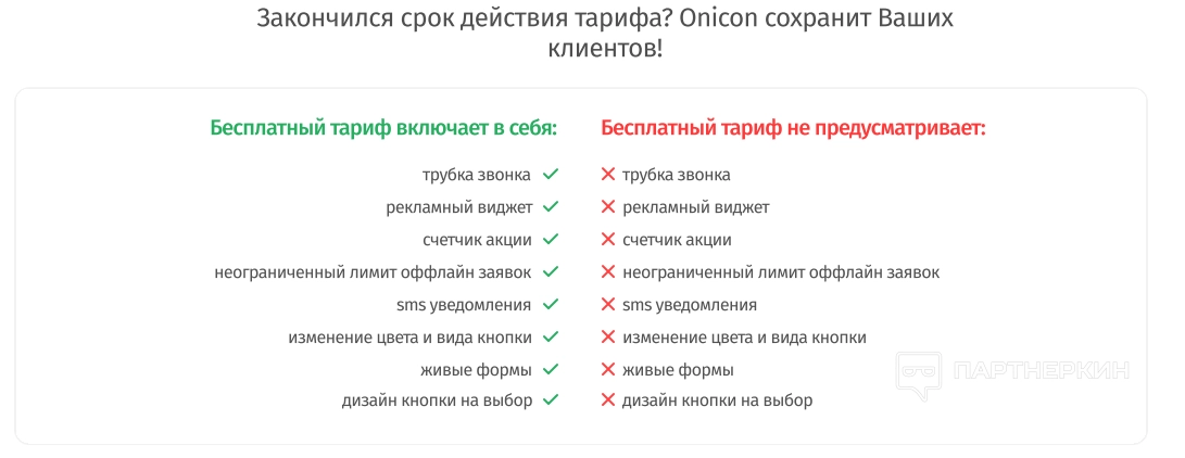 Стоит еще раз отметить, что бесплатный тариф включает в себя серьезные, но не критические ограничения. Пользователю доступны: трубка звонка, рекламный виджет, счетчик акции, неограниченный лимит оффлайн заявок, sms-уведомления, изменение цвета и вида кнопки, живые формы, а также дизайн кнопки на выбор.